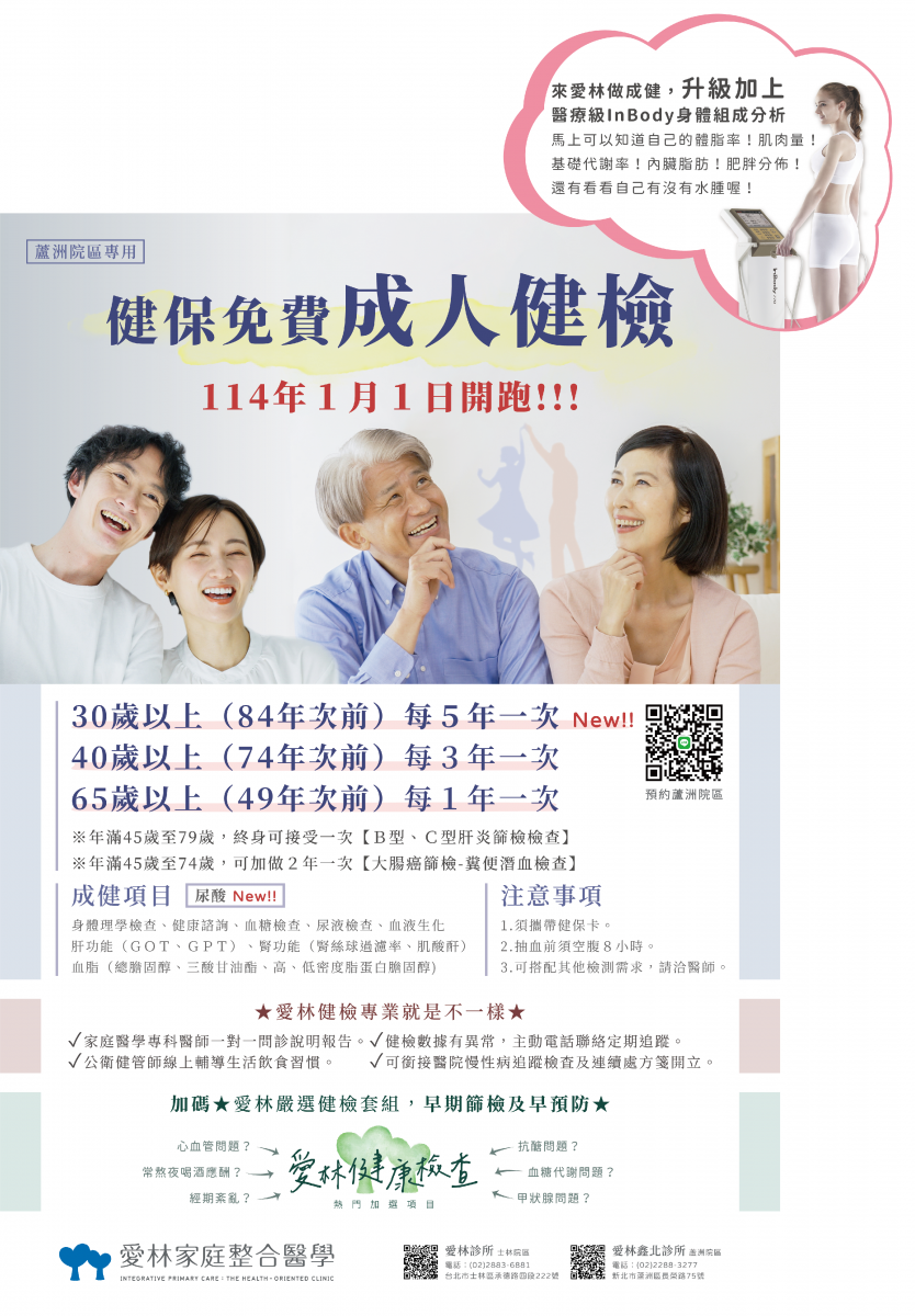 加碼★愛林嚴選健檢套組,早期篩檢及早預防★