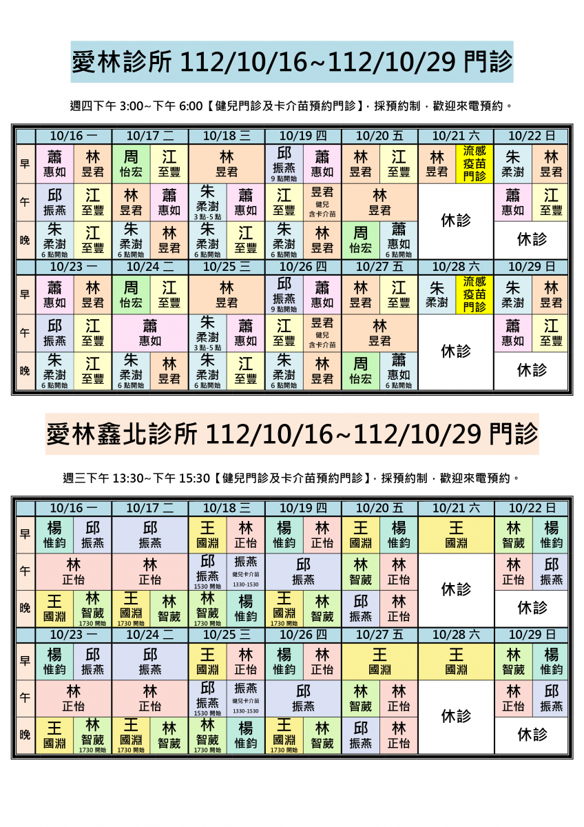 【10月份兩院區加開公自費流感疫苗門診,請注意門診報到時間】