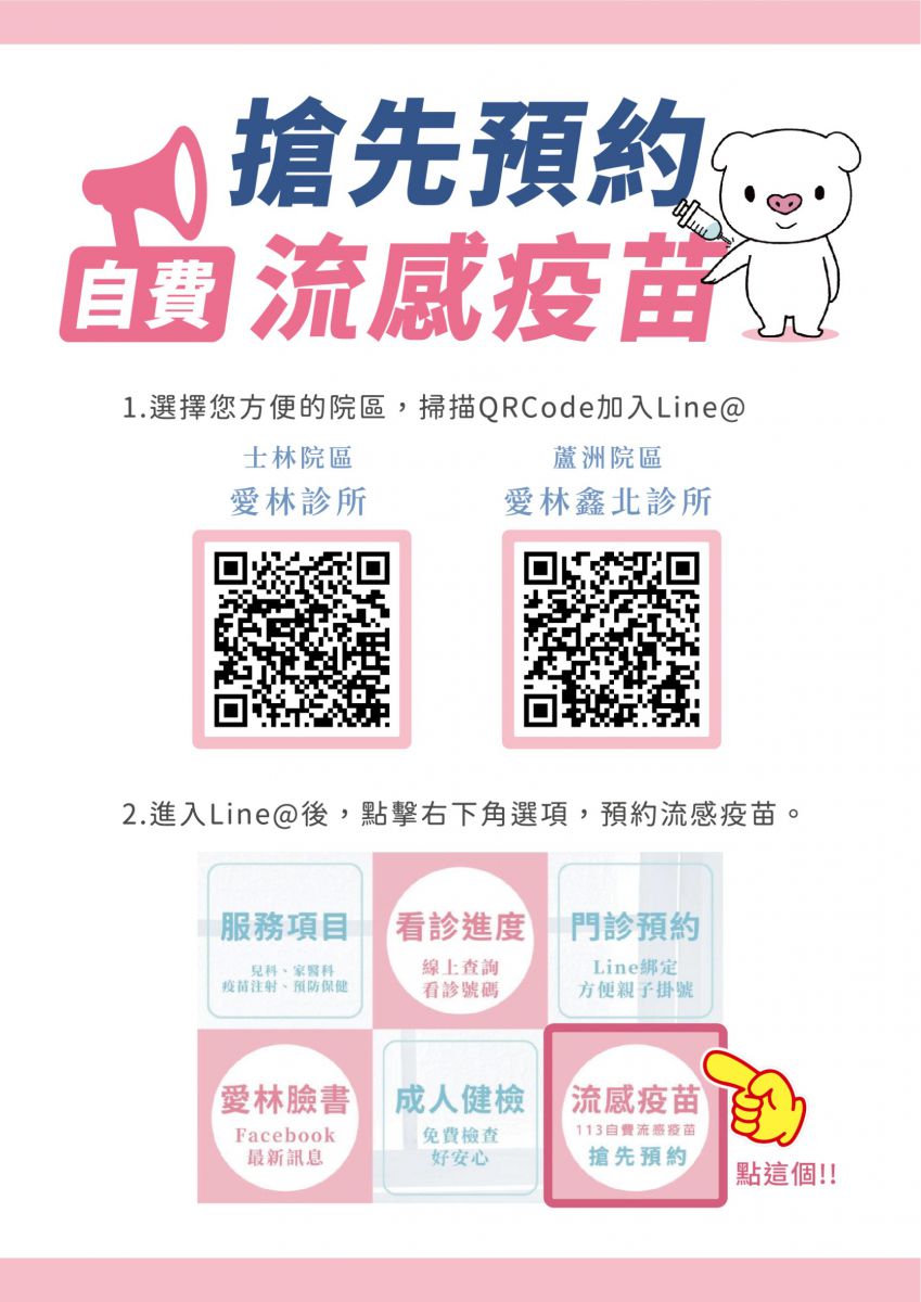 #自費流感疫苗 #愛林診所 #愛林鑫北診所 #愛林家庭整合醫學