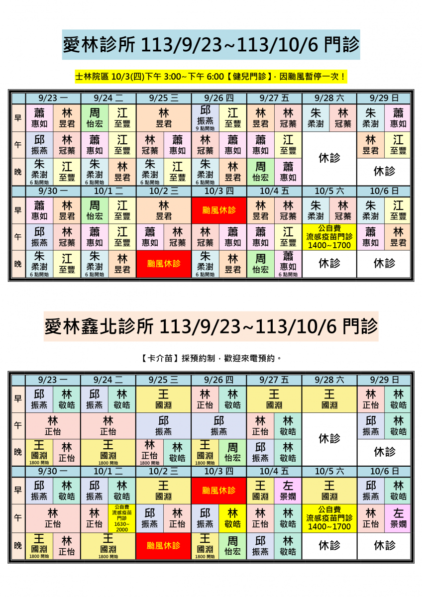 ★ 10/3(四)下午、晚上一般門診正常開診,也可打公自費流感疫苗!