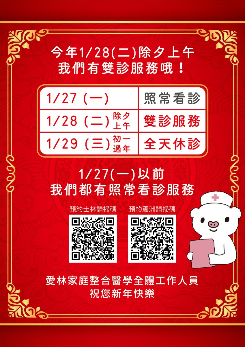 ★ 1/26(日)、1/27(ㄧ)照常看診
